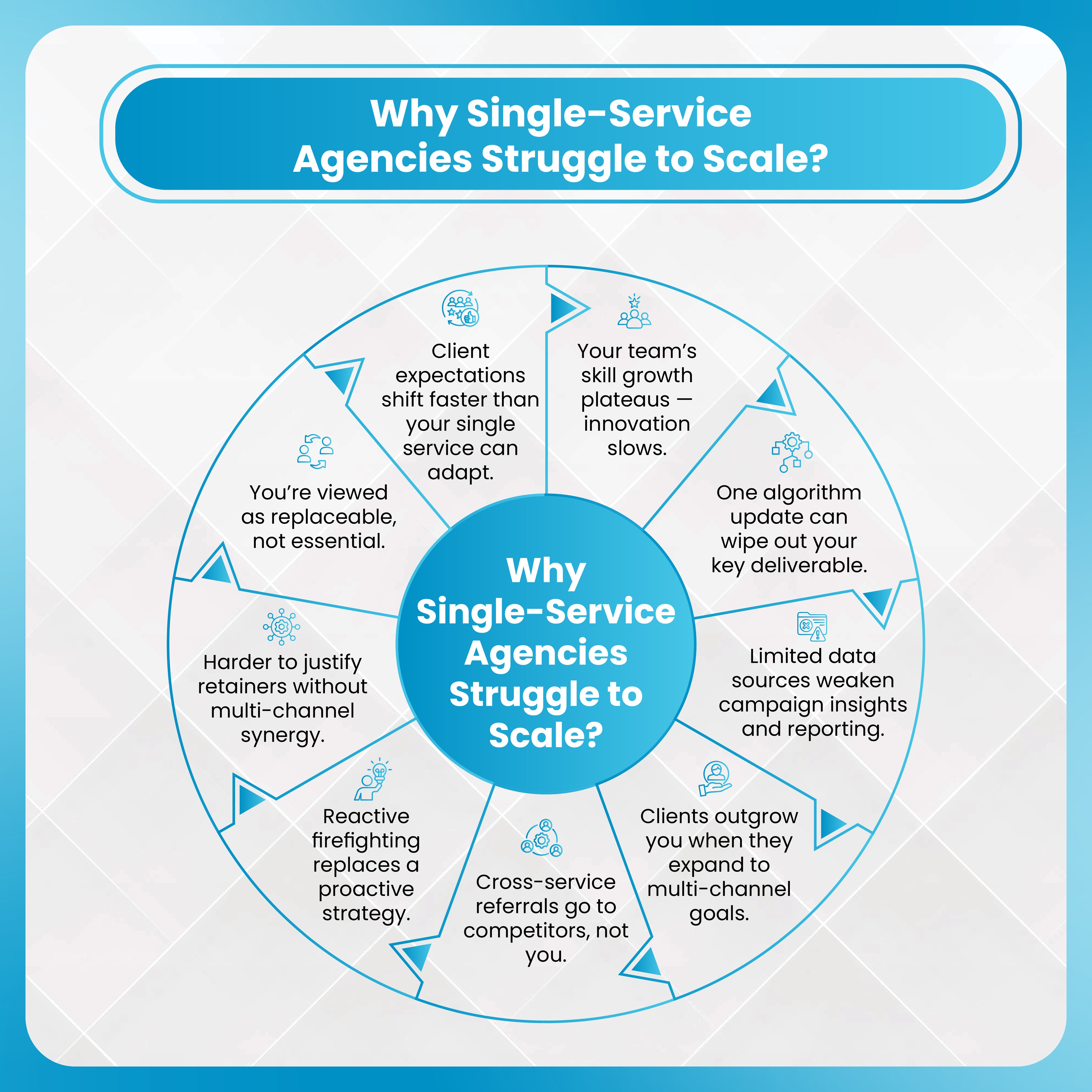 In today's competitive digital landscape, agencies are constantly under pressure to deliver comprehensive results and prove their value. Standing still isn't an option. Clients expect integrated strategies that drive growth across all channels, and if you can't provide them, they'll find someone who can. This is where portfolio diversification becomes not just a growth strategy, but a survival tactic.