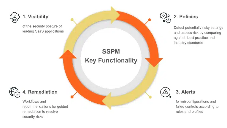SSPM is the central management tool for understanding the security settings of all of your sanctioned apps (e.g., your enhanced CRM software, InstaSites, etc). It is a purpose-built toolset for understanding misconfiguration, managing permissioning, and driving compliance across your SaaS tool stack.